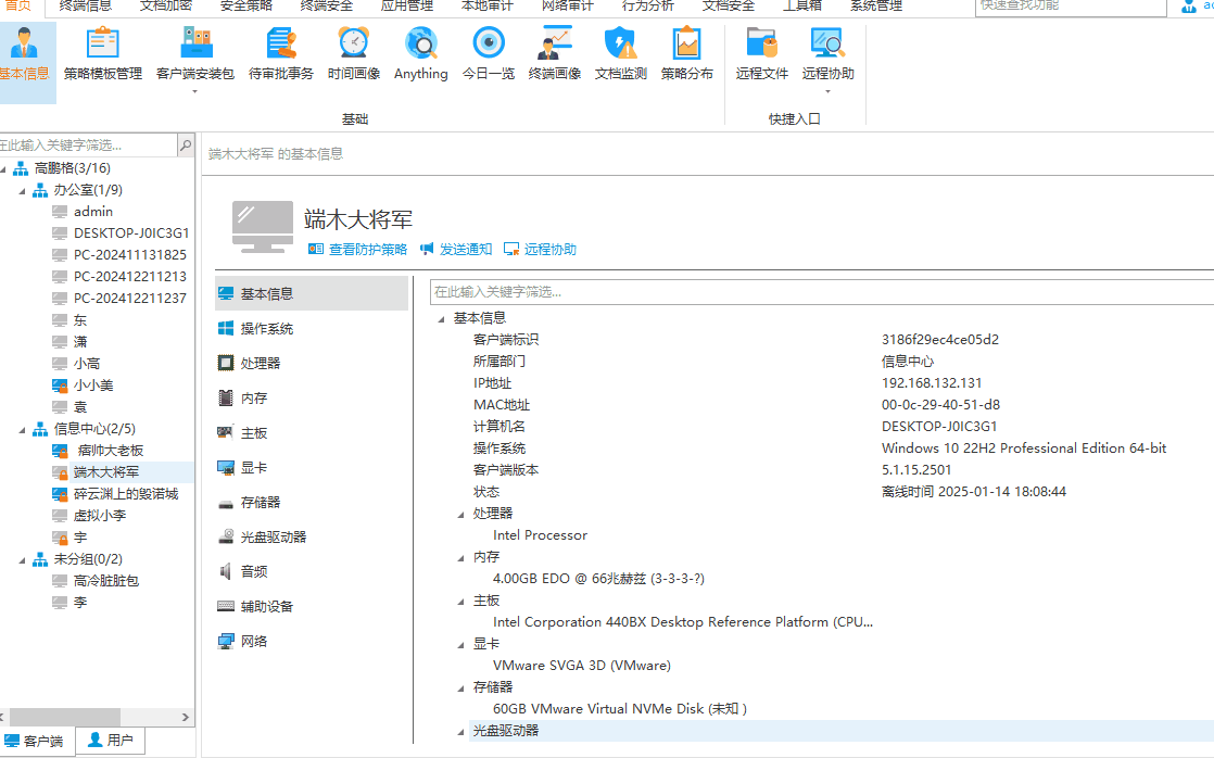 功能说明:管理员可远程控制员工电脑,协助解决问题或进行检查。